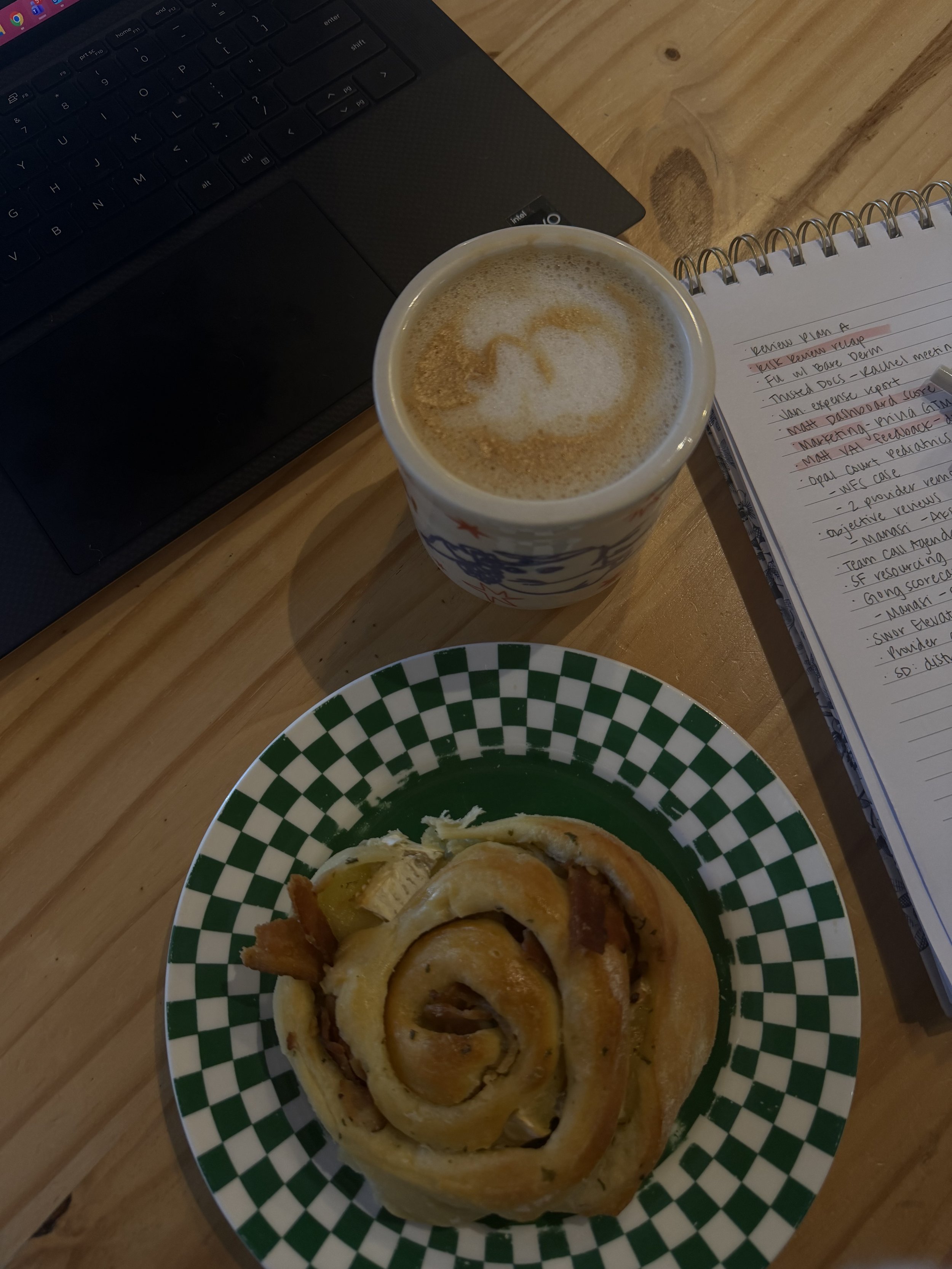 Daydrinkers was a January staple for me. Their brown sugar cinnamon latte is the definition of cozy — warm, slightly sweet, and perfect for cold mornings. And if you’re there, do not skip the brie + bacon breakfast pastry. It’s rich, flaky, savory, and genuinely one of the best pastries I’ve had at a Greenville coffee shop.